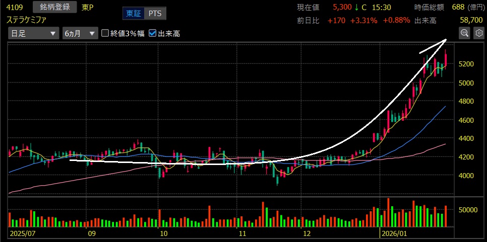 ステラケミファ(4109)+24.4%上昇
