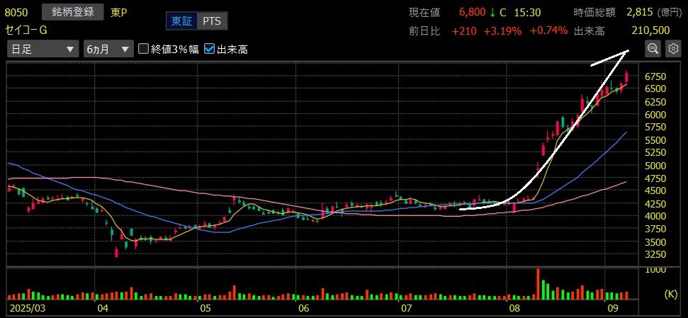 セイコーG(8050)+60.0%上昇 上場来高値更新! ハーフバガー達成🎉