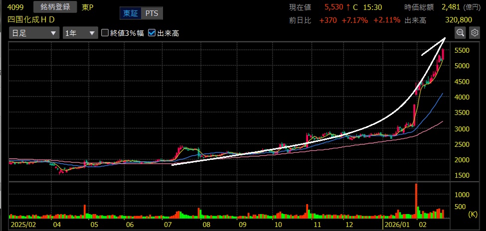 四国化成HD(4099)+178.0%上昇 上場来高値更新!2.7倍達成🎉