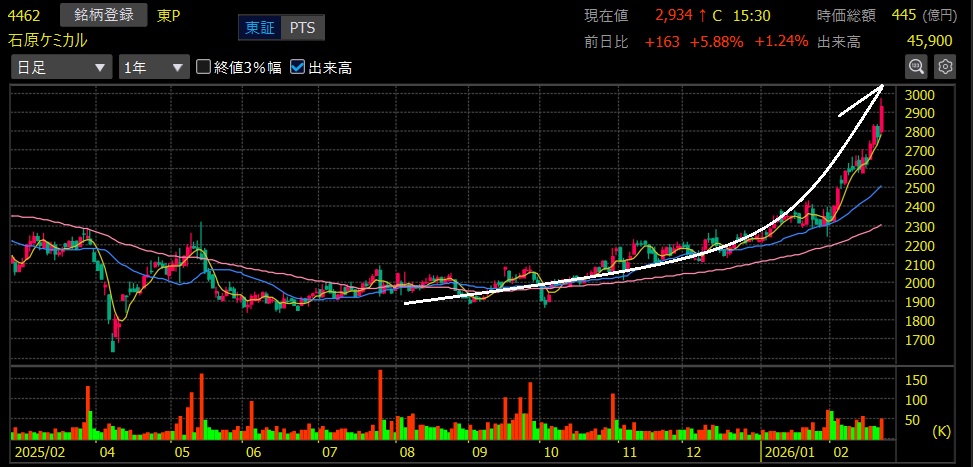 石原ケミカル(4462)+43.2%上昇 上場来高値更新!
