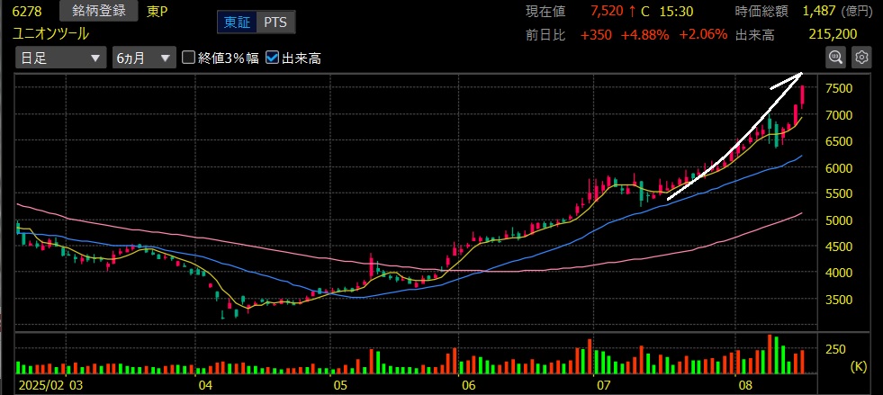 さらに7月半ばにエントリーとなったユニオンツールも同様に上値追い継続で+5%弱の上昇で