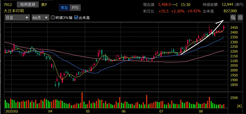 さらに7月半ばにエントリーとなった大日本印刷もエントリー直後から上昇スタートとなり、