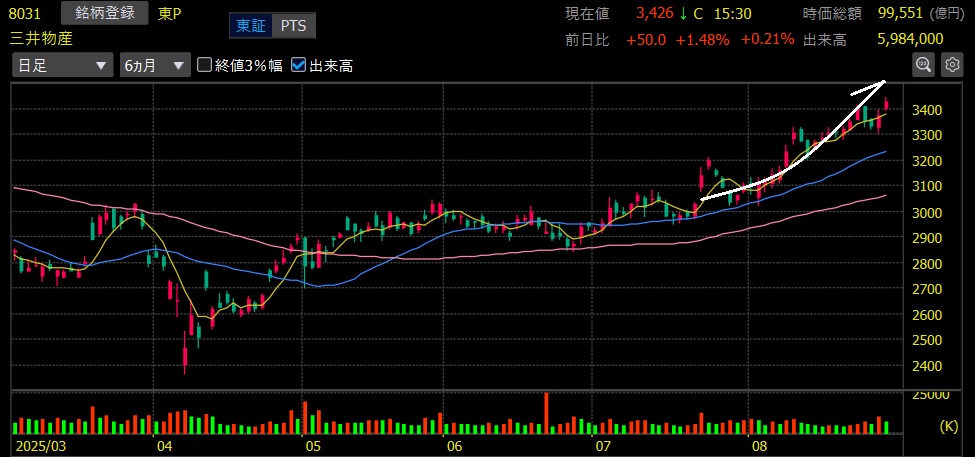 また7月下旬にエントリーとなった三井物産もエントリー直後から上値追いが