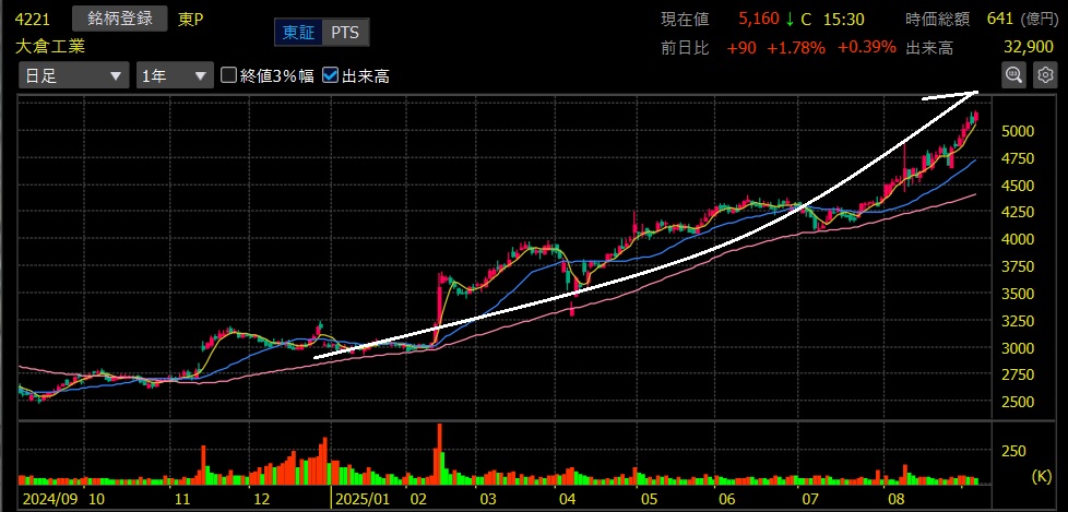 さらに昨年12月下旬にエントリーとなった大倉工業も足元で上値追いを強めており、