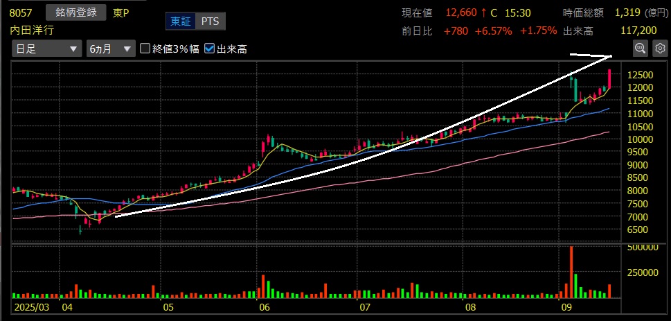 上値追いを強め本日+6.5%の上昇で再び年初来高値&上場来高値更新となりました🎉ちなみに初めて内田洋行をこちらでご紹介したのが5月下旬でした。そのときの