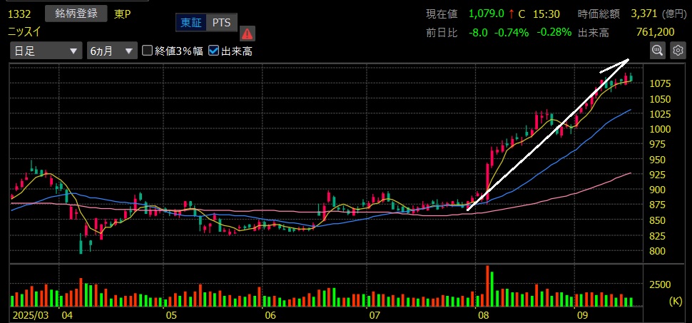 このようにどんどん上昇していく銘柄を狙って爆益を取りたいと思われた方は