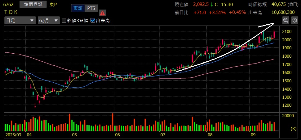 TDKのチャートを改めて確認すると分かりますが、4月のトランプ関税ショックのときを