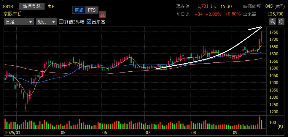 また7月初旬にエントリーとなった京阪神ビルディングが続伸し、連日での年初来高値を更新!