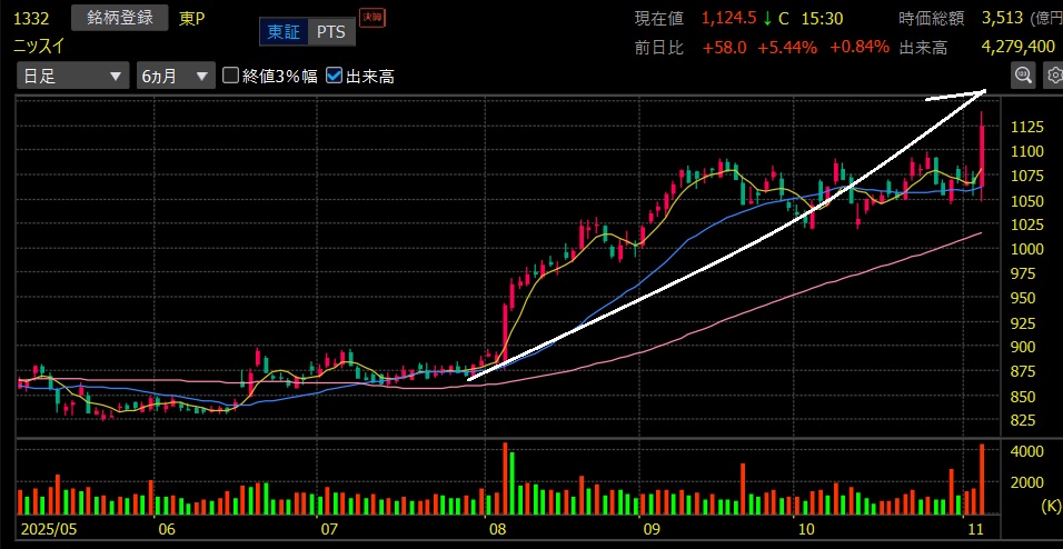 このようにどんどん上昇していく銘柄を狙って爆益を取りたいと思われた方は