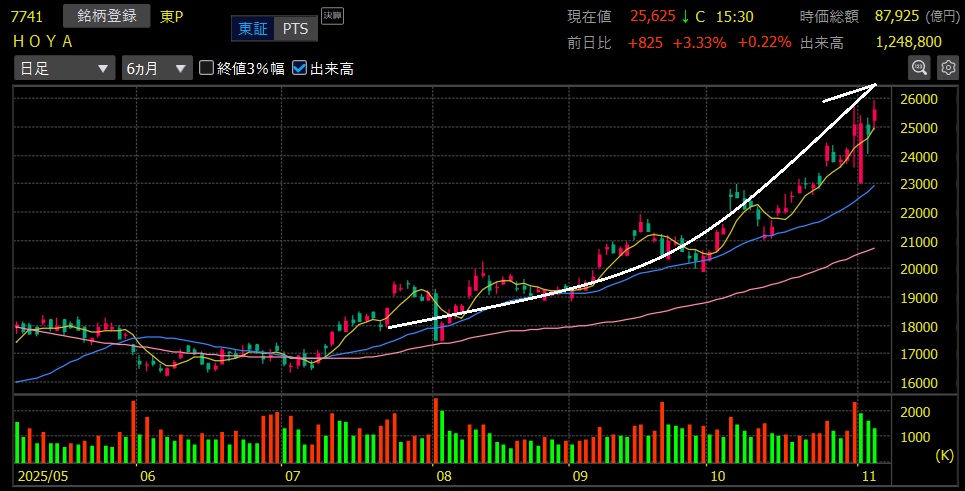 HOYAはエントリー時より+38%の上昇となっています🎉