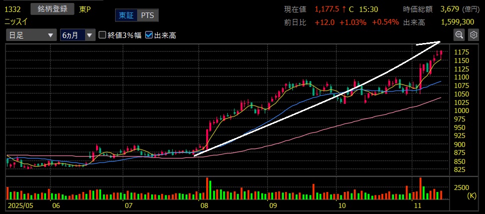 ニッスイ(1332)上場来高値更新🎉