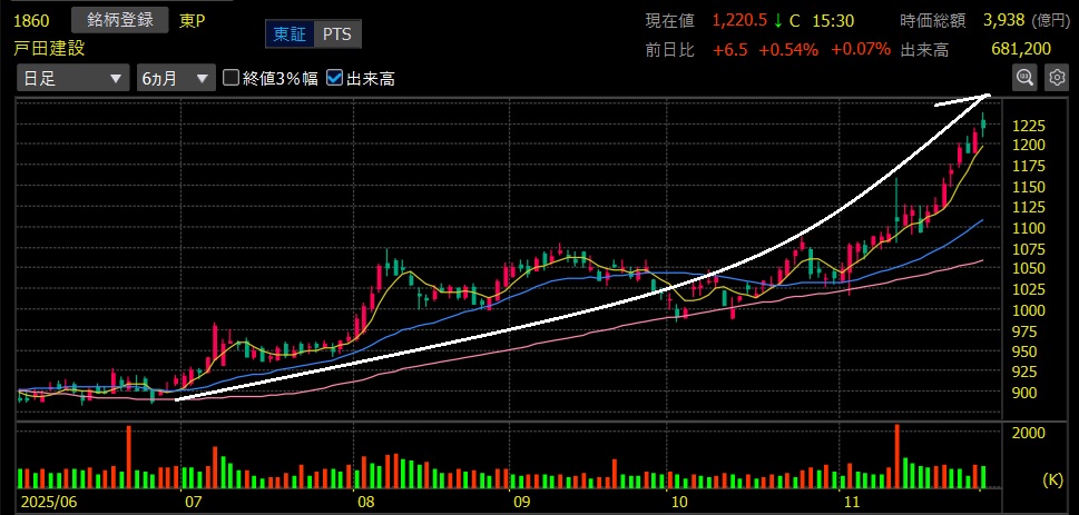 戸田建設(1860)+33.1%上昇 上場来高値更新!
