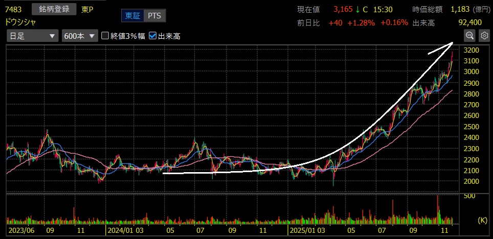 続いて、ドウシシャ(7483)です。ドウシシャを初出ししたのは昨年6月20日、