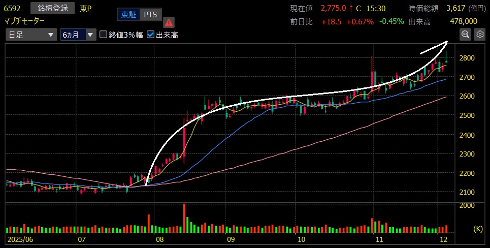(マブチモーター・日足チャート)