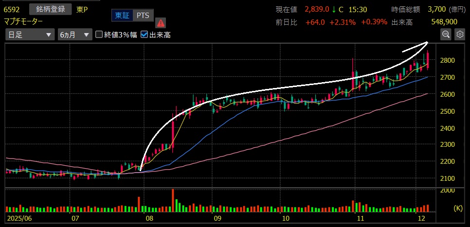 さらに7月下旬にエントリーとなったマブチモーターも上値追いを強めており、こちらも