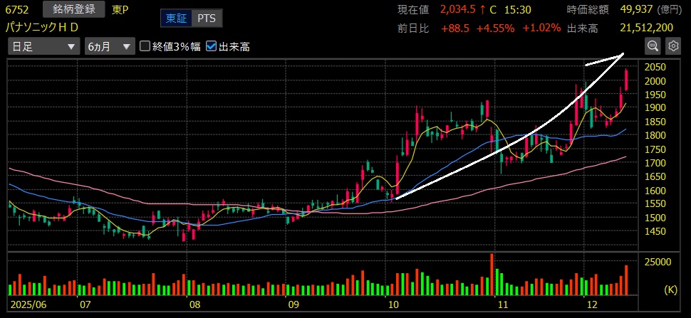 パナソニック(6752)+19.8%上昇 上場来高値更新!