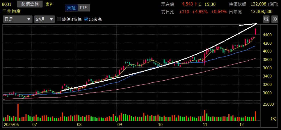 三井物産(8031)+44.5%上昇 上場来高値更新!まもなくハーフバガー達成🎉