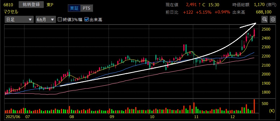 このようにどんどん上昇していく銘柄を狙って爆益を取りたいと思われた方は