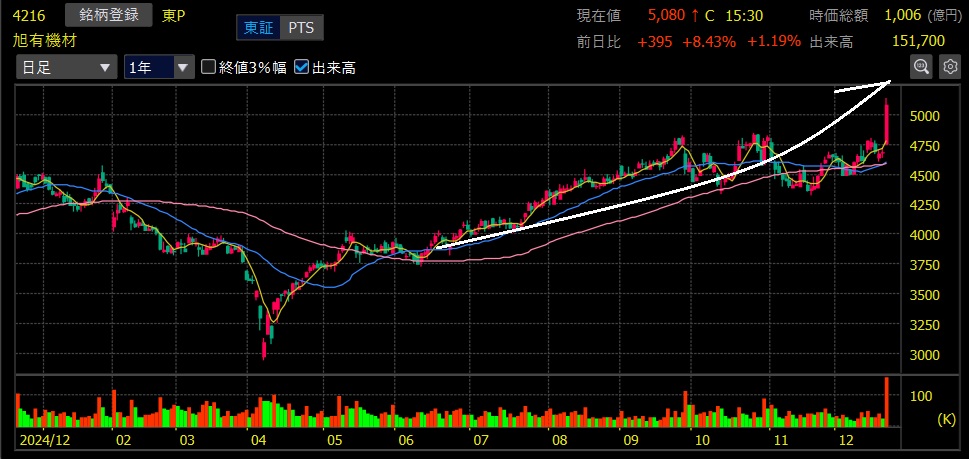 まずは、旭有機材(4216)です。初出しは9/19でした💡