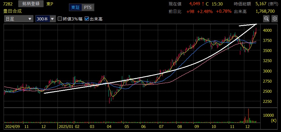 豊田合成(7282)+56.7%上昇 ハーフバガー達成🎉