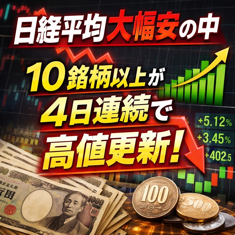 ◆祝!日経大幅続落の中、4日連続10銘柄以上が高値更新!初出しも公開