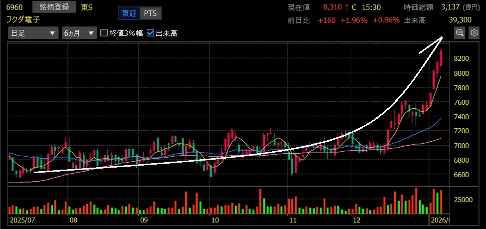 まずはフクダ電子です。こちらの銘柄は昨年12/17に初出しとしてご紹介を