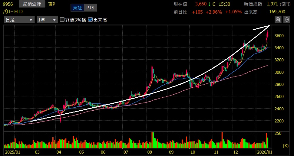 バローHD(9956)+63.2%上昇 ハーフバガー達成🎉