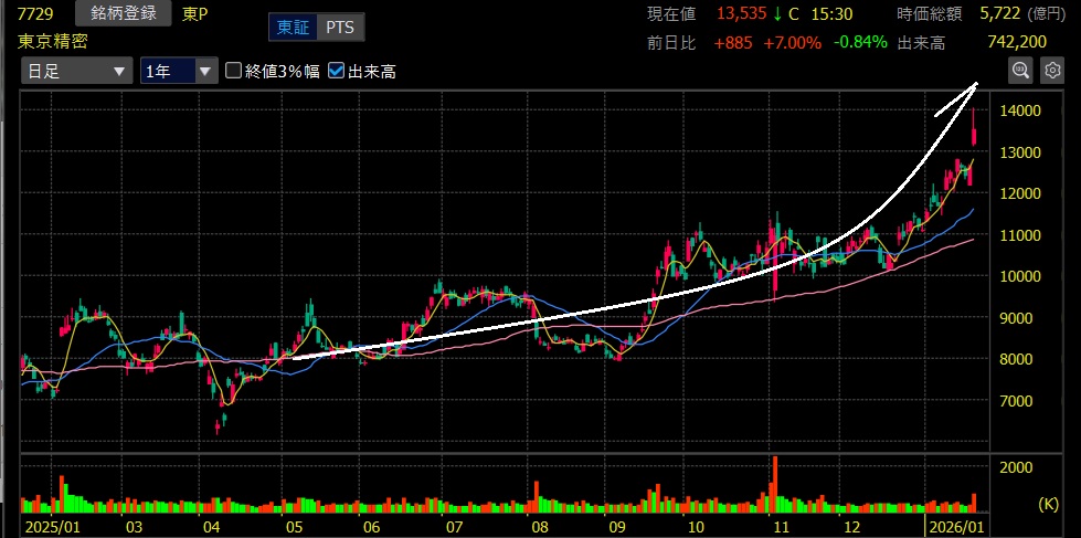 東京精密(7729)+62.7%上昇 上場来高値更新!ハーフバガー達成🎉