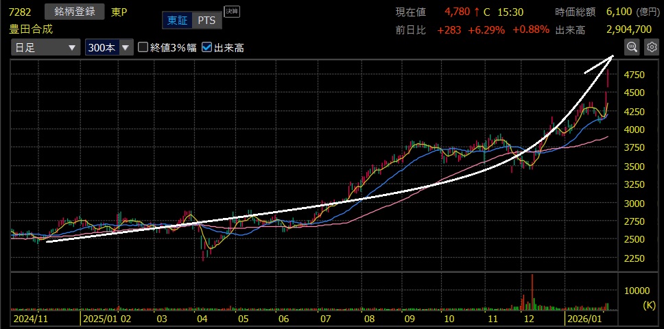 豊田合成(7282)+85.0%上昇 上場来高値更新!ハーフバガー達成🎉