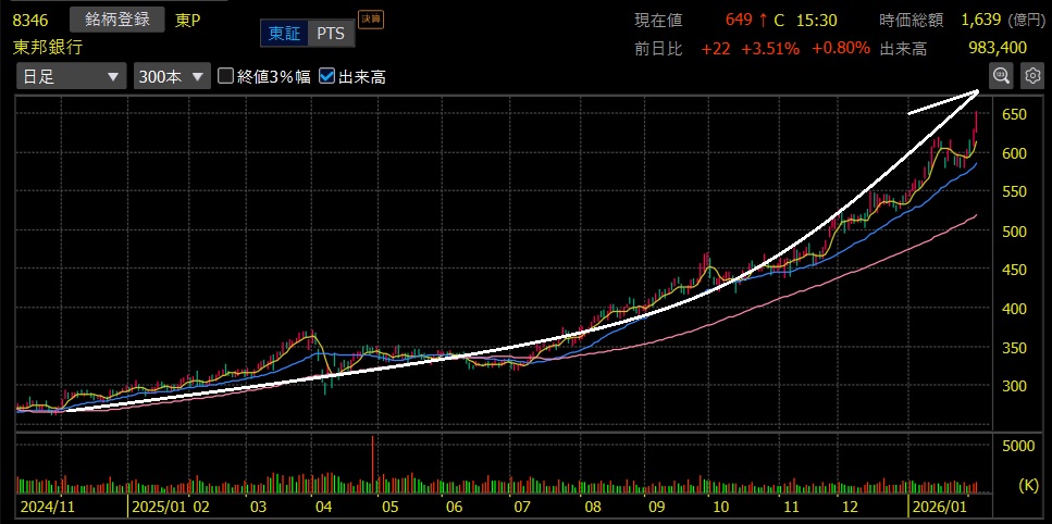 東邦銀行(8346)+130.9%上昇 上場来高値更新!2バガー達成🎉