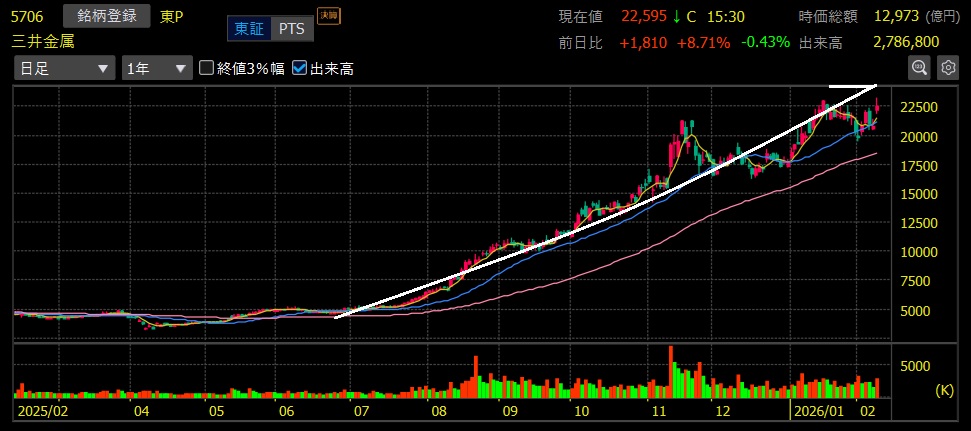 三井金属(5706)+372.8%上昇 上場来高値更新! 4.7倍達成🎉🎉🎉