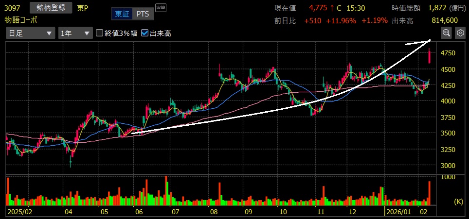 物語コーポレーション(3097)+34.8%上昇