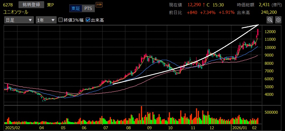 ユニオンツール(6278)+117.1%上昇 上場来高値更新!2バガー達成🎉🎉