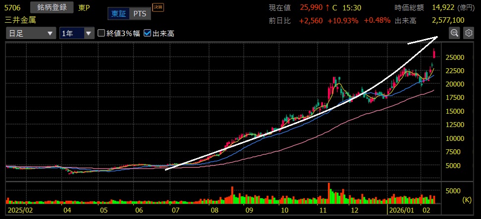 三井金属(5706)+443.9%上昇  上場来高値更新!株価約5.5倍達成🎉🎉