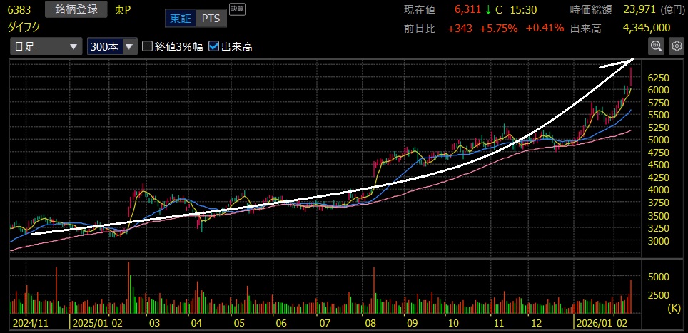 ダイフク(6383)+88.6%上昇 上場来高値更新!ハーフバガー達成🎉