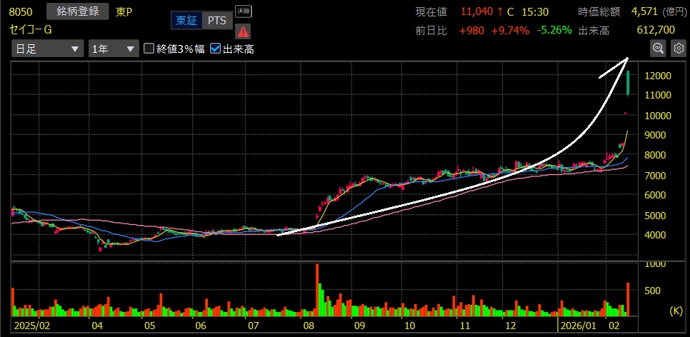 セイコーG(8050)+159.7%上昇 上場来高値更新!2.5倍達成🎉